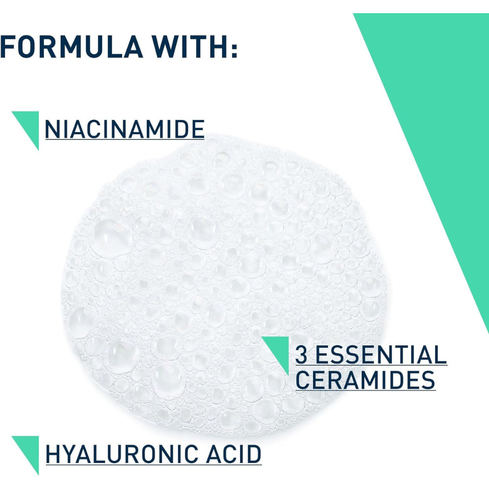 CeraVe Foaming Cleanser is a gentle, non-drying face wash for normal to oily skin, formulated with essential ceramides, hyaluronic acid, and niacinamide to cleanse, hydrate, and calm the skin without clogging pores.