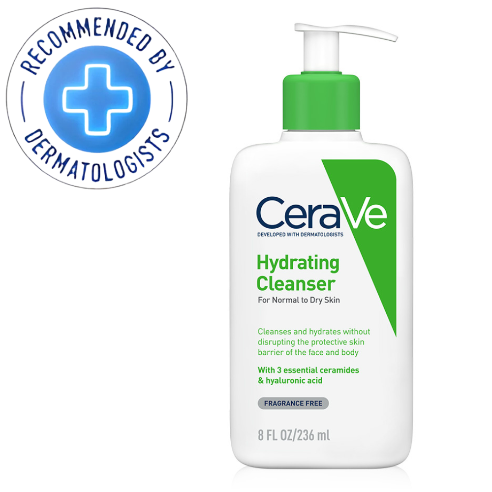 CeraVe Hydrating Cream-to-Foam Cleanser transforms from a creamy texture to a soft foam that gently removes makeup, dirt, and oil. This fragrance-free, non-drying formula hydrates the skin and helps restore its natural moisture barrier.