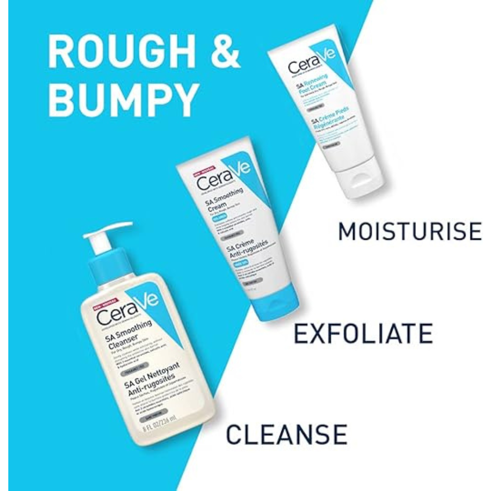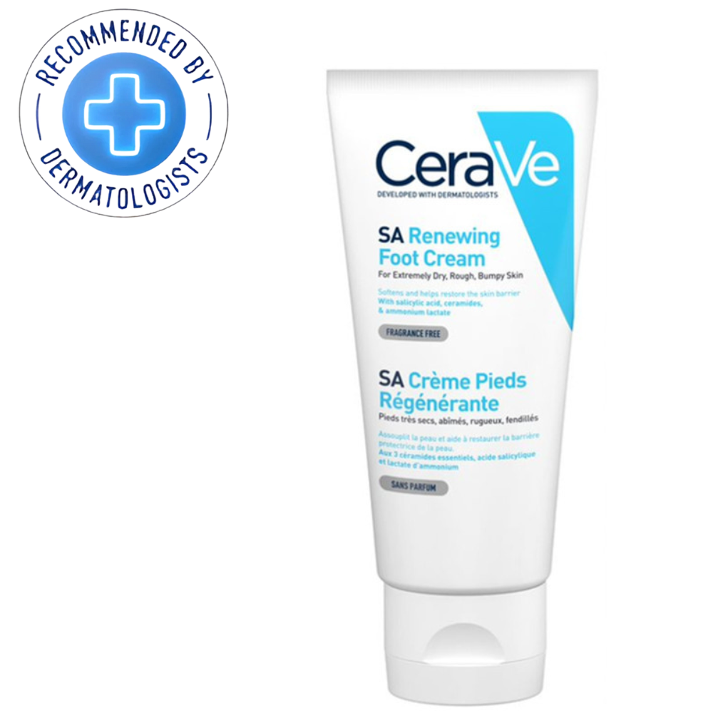 CeraVe SA Renewing Foot Cream is specially formulated to target extremely dry, rough skin on the feet. Developed with dermatologists, this fast-absorbing, non-greasy cream combines the exfoliating power of salicylic acid with the moisturizing benefits of hyaluronic acid and 3 essential ceramides. The formula works to smooth and soften even the toughest skin, while supporting the natural skin barrier. With patented MVE® Delivery Technology, the cream provides controlled release of hydration that lasts for 24 hours. Ideal for sensitive, allergy-prone skin, this foot cream is fragrance-free and allergy-tested, delivering effective relief to cracked, uncomfortable feet.