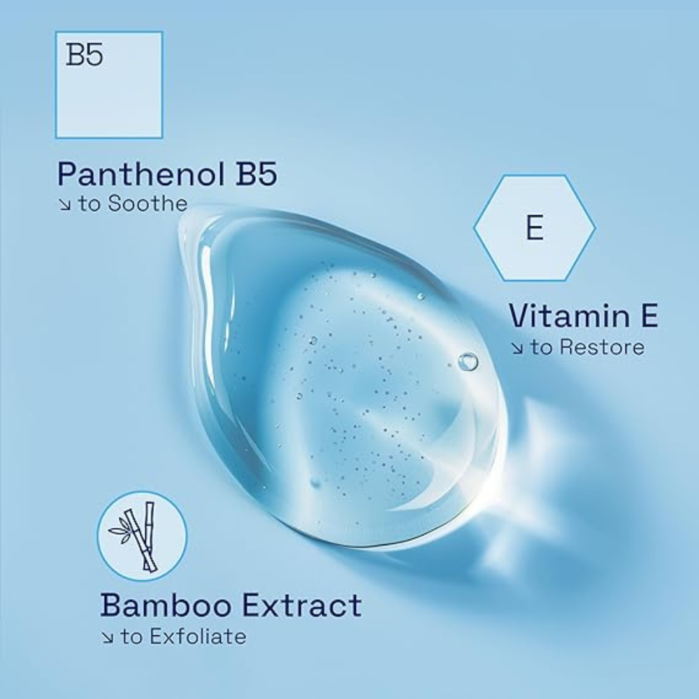 Enriched with bamboo extract, vitamin E, and pro-vitamin B5, this exfoliating cleanser supports healthy skin, defends against dryness, dullness, roughness, and irritation, and strengthens the skin’s moisture barrier. Its non-comedogenic and hypoallergenic formula ensures it won’t clog pores or irritate the skin, making it gentle enough for daily use.