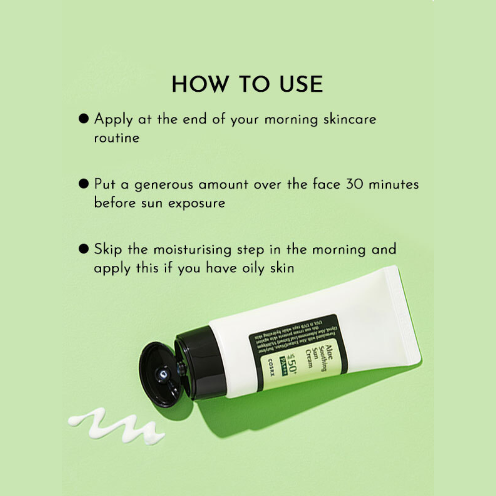 Cosrx Aloe Soothing Sun Cream is a lightweight, moisturizing sunscreen enriched with 5,500ppm Aloe Leaf Extract. Designed to absorb quickly without greasiness or white cast, this sun cream offers excellent protection from harmful UV rays while providing soothing hydration, making it suitable for all skin types.