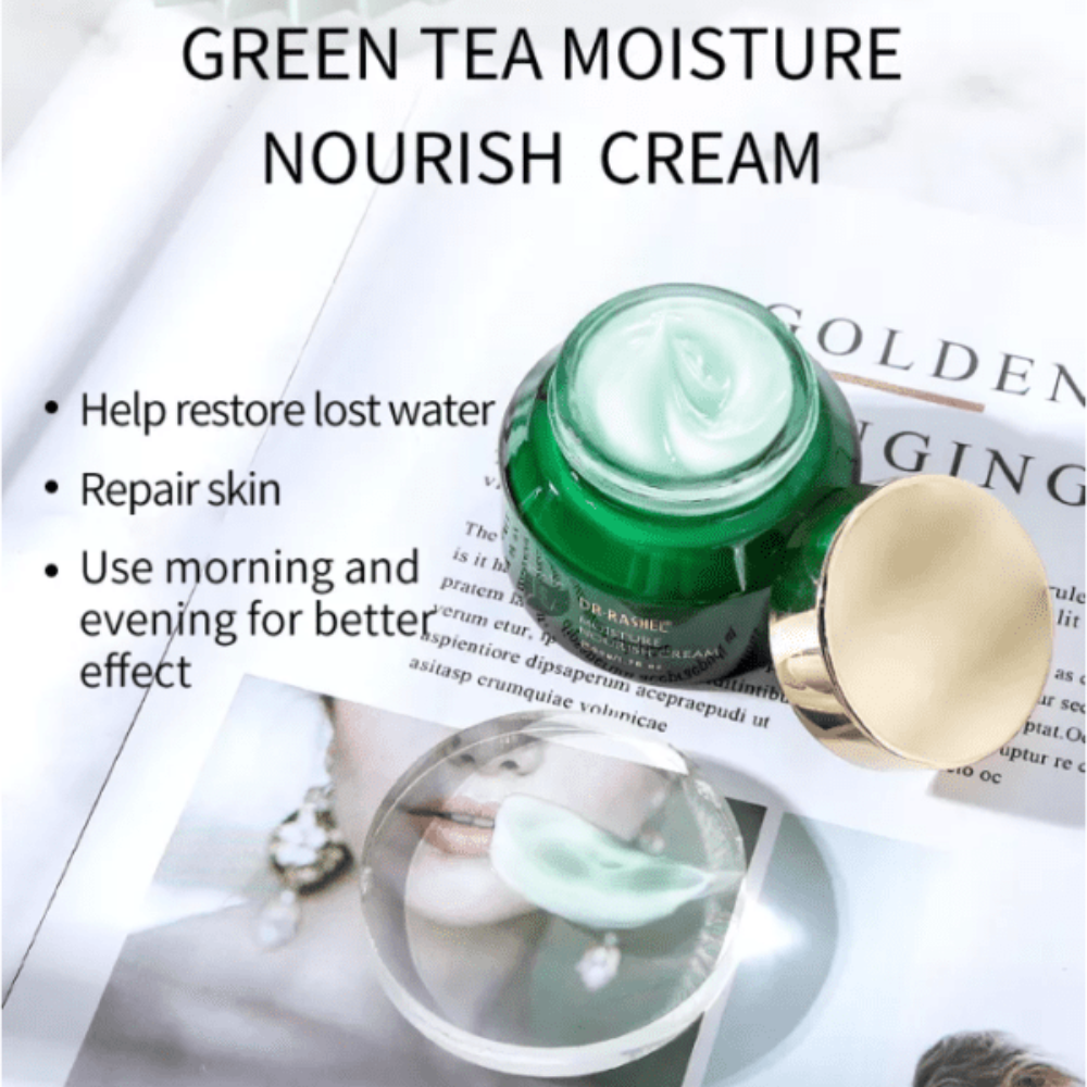 Dr Rashel Green Tea Moisture Nourish Cream is a deeply hydrating, lightweight moisturizer that replenishes skin’s moisture while maintaining a healthy oil-water balance. Infused with powerful antioxidant-rich green tea extract, this cream protects the skin from environmental stressors, reducing inflammation and enhancing overall skin clarity.