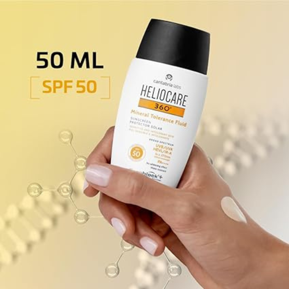Heliocare 360º Mineral Tolerance Fluid SPF 50 is a high-tolerance sunscreen crafted for sensitive, reactive, or post-procedure skin. Featuring 100% mineral filters, this lightweight formula ensures effective sun protection without compromising comfort. Its invisible finish is suitable for all skin tones, including dark skin, making it a versatile choice for those seeking reliable and gentle photoprotection.