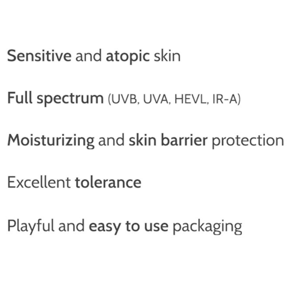 This lotion meets the highest photoprotection standards, offering defense against UVB, UVA, visible light, and infrared radiation while neutralizing and repairing sun damage. Its lightweight, non-sticky texture is easy to spread and absorbs quickly, ensuring effortless daily use. The spray format allows for even application and precise dosing, making it ideal for active children.