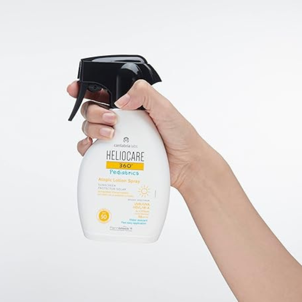 Heliocare 360º Pediatrics Atopic Lotion Spray SPF 50 is specially designed for children with sensitive and atopic skin, providing high-performance, broad-spectrum sun protection. Its hypoallergenic formula features Fernblock®+ technology combined with hydrating ingredients like arginine and glycerine, which help restore and maintain a healthy skin barrier.