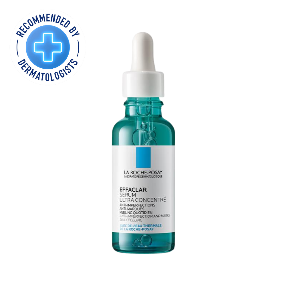 La Roche-Posay Effaclar Serum is a powerful, targeted treatment designed to address breakouts, visible pores, and early signs of aging in acne-prone skin. Formulated with a potent blend of salicylic acid, LHA, and glycolic acid, this serum works to deeply exfoliate and unclog pores, minimizing the appearance of imperfections and refining skin texture. Added niacinamide strengthens the skin barrier, while La Roche-Posay Thermal Spring Water soothes and reduces irritation. Clinically proven to reduce the visibility of blemishes, fine lines, and blackheads, Effaclar Ultra Concentrated Serum is ideal for use in the evening to leave skin clearer, smoother, and more refined over time.