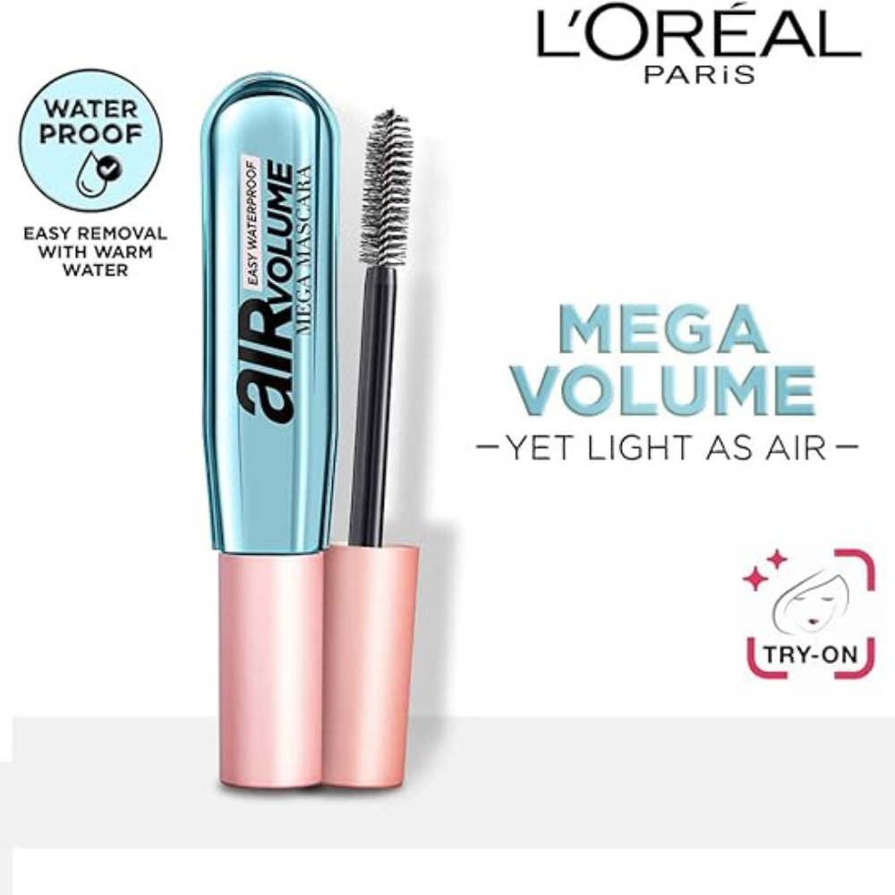 Blow away the rules of volume with the L’Oréal Paris Waterproof Air Volume Mega Mascara! Engineered to defy gravity, this waterproof mascara delivers mega lash volume while feeling light as air. Its air-whipped formula inflates lashes for a lash-multiplying effect that lasts up to 24 hours without smudging, flaking, or sweating off.