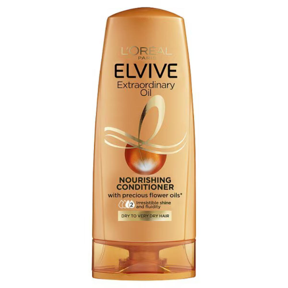 Deeply condition and nourish dry to very dry hair with L’Oréal Elvive Extraordinary Oil Conditioner. Enriched with 6 oil extracts for weightless hydration and silkiness.