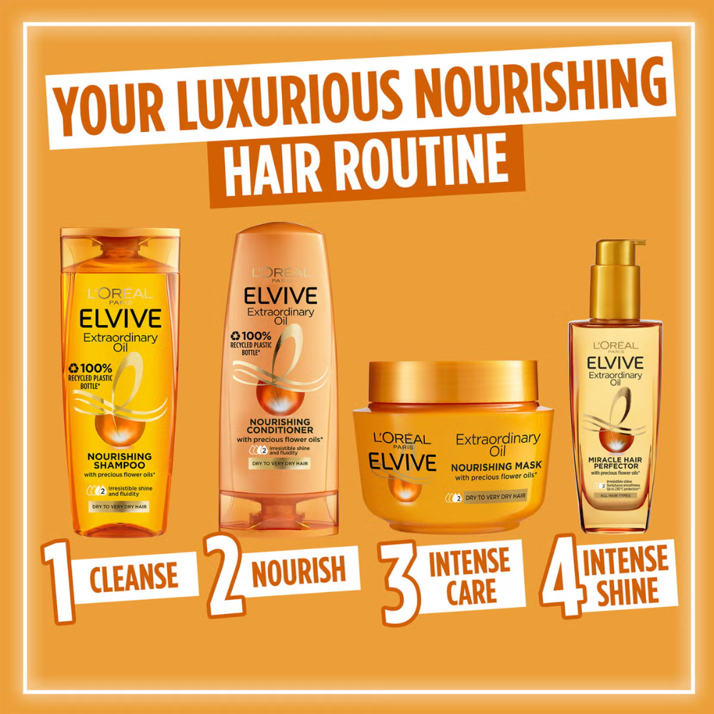 L’Oréal Paris Elvive Extraordinary Oil Nourishing Conditioner is a luxurious solution for dry to very dry hair, enriched with 6 precious oil extracts that deeply nourish the hair and scalp. This rich formula provides intensive conditioning from root to tip, leaving your hair feeling lightweight, silky smooth, and easy to detangle.