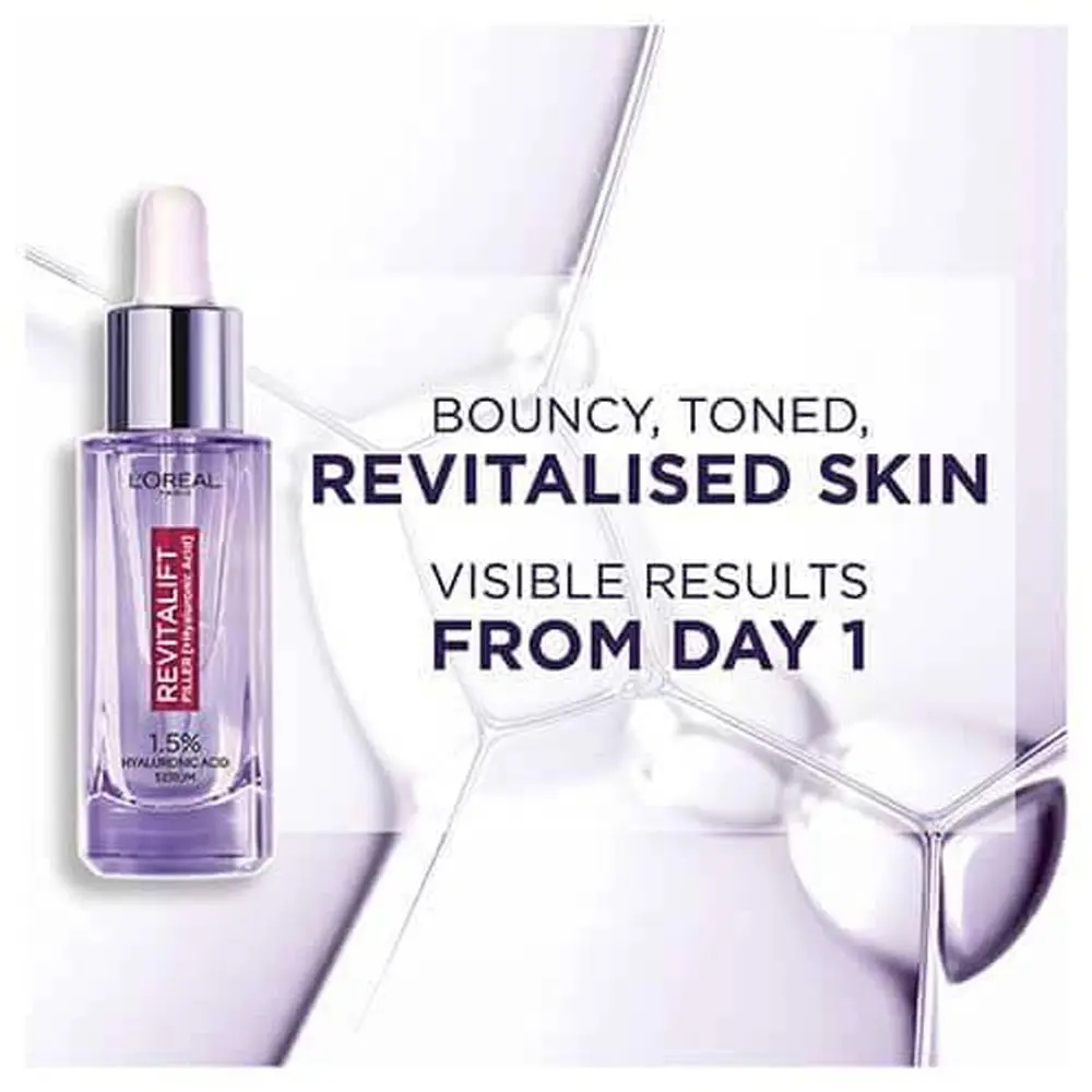 Revitalize your skin with L’Oréal Paris Revitalift Filler Serum LP30. Enriched with 1.5% hyaluronic acid, this serum targets fine lines, hydrates, and promotes firmness for a youthful glow.