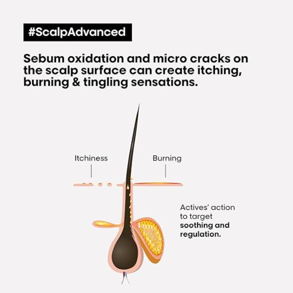 The L’Oréal Professionnel Scalp Advanced Anti-Discomfort Intense Soother is a targeted treatment for sensitive scalps, formulated to provide instant relief from discomfort. This lightweight gel is enriched with Niacinamide, a soothing vitamin that works to calm scalp irritation, including itching, burning, and tingling.