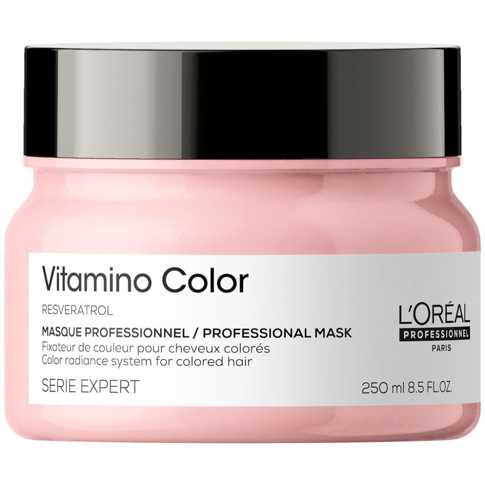 L’Oréal Professionnel Serie Expert Vitamino Colour Radiance Masque is an intensely hydrating treatment designed to protect and enhance colour-treated hair. This rich mask is formulated with Resveratrol, a potent antioxidant, that helps preserve your hair’s colour and protect it from fading. It deeply nourishes, detangles, and strengthens hair to prevent future breakage while enhancing colour vibrancy and providing a smooth, shiny finish. Ideal for colour-treated hair, this masque works to strengthen hair from root to tip, leaving it soft, manageable, and vibrant for up to 8 weeks when used with the full Vitamino Colour system.