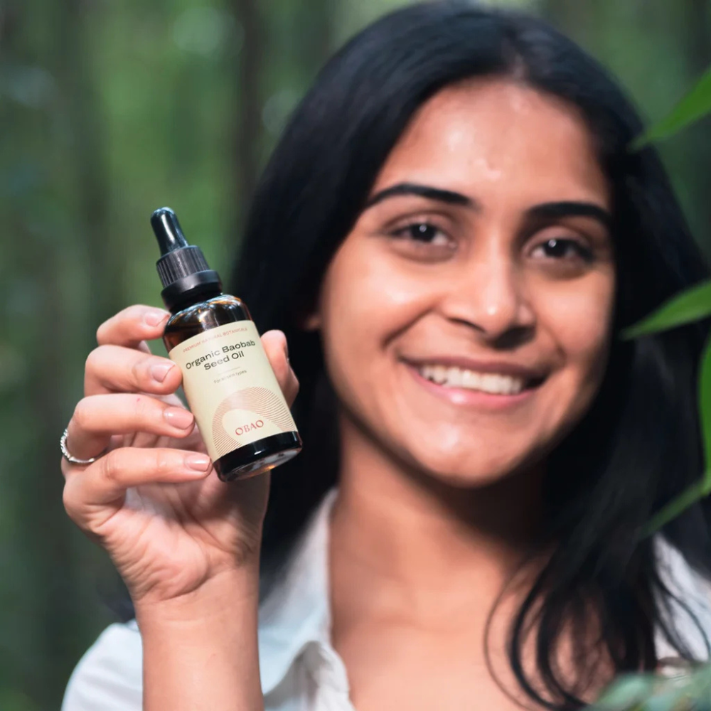 Derived directly from baobab seeds, this lightweight oil absorbs quickly without leaving a greasy residue, restoring softness and resilience to even the most sensitive skin. Its gentle yet effective formula makes it a versatile addition to any clean skincare routine—whether used alone or blended into your moisturizer.”