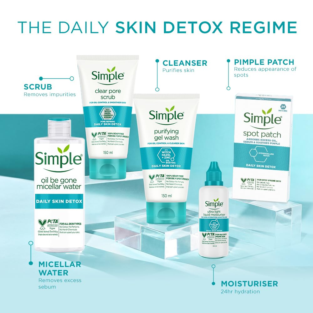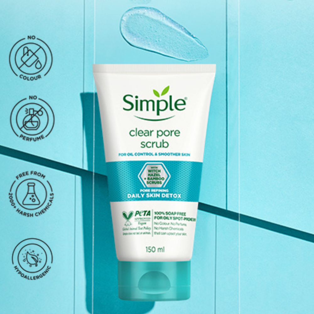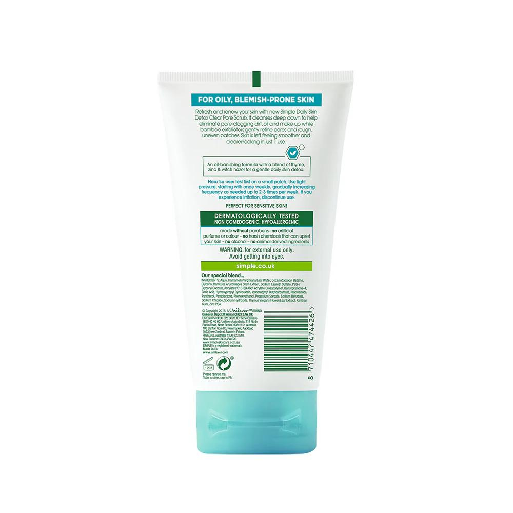 Deep cleanse and exfoliate oily skin with Simple Daily Skin Detox Clear Pore Scrub, featuring Thyme, Zinc, Witch Hazel, and gentle bamboo exfoliators. Purify pores and smooth skin texture for a refreshed, revitalized feel.