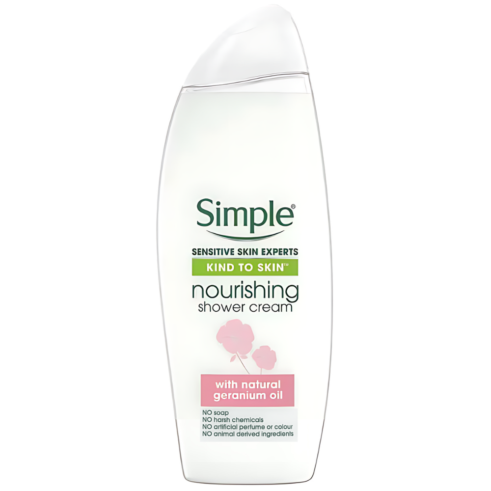 Simple Kind to Skin Nourishing Shower Cream cleanses and hydrates skin with a gentle, vitamin-rich formula, perfect for daily use on all skin types, even sensitive skin.