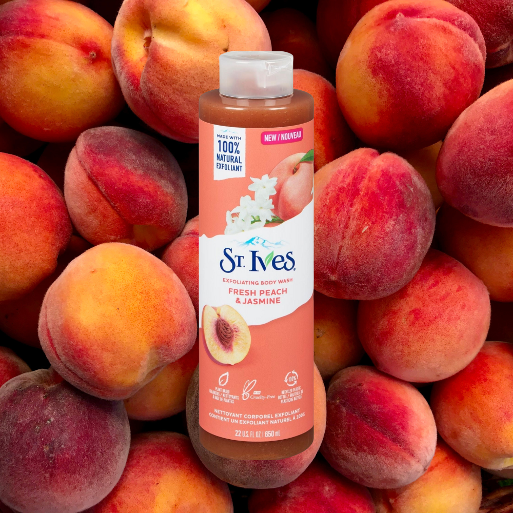 Get your glow on with the St. Ives Fresh Peach & Jasmine Exfoliating Body Wash, crafted to gently cleanse and renew your skin. Infused with 100% natural peach and jasmine extracts and natural walnut shell powder, this exfoliating body wash buffs away dull skin to reveal a radiant, silky-smooth glow from head to toe.